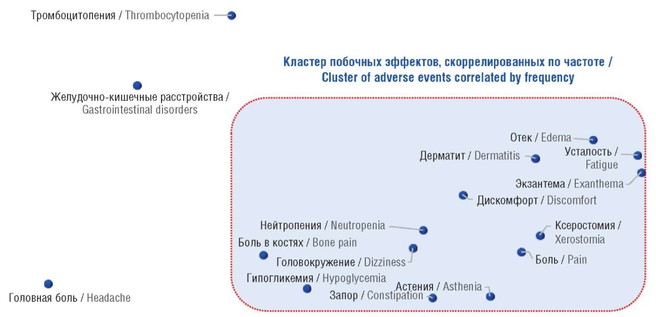 ► Анализ частот встречаемости различных побочных эффектов, усредненных по их исследованной выборке, выявил, что теноксикам характеризуется наименьшим показателем