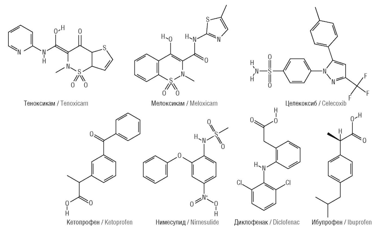 Среди умеренно селективных ингибиторов ЦОГ-2 следует выделить оксикамы, отличающиеся приемлемым балансом противовоспалительной эффективности и безопасности. Такому препарату из группы оксикамов, как теноксикам, присуще весьма продолжительное действие (до нескольких суток), что важно для лечения опорно-двигательной патологии. Действительно, в соответствии с фармакокинетическими данными теноксикам быстро и полностью всасывается из ЖКТ (биодоступность 100%), причем максимальная концентрация достигается через 2 ч, а период полувыведения – 72 ч [2–4].